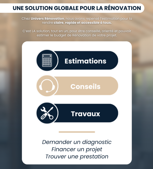 C’est LA solution, tout en un, pour être conseillé, orienté et pouvoir estimer le budget de Rénovation de votre projet.